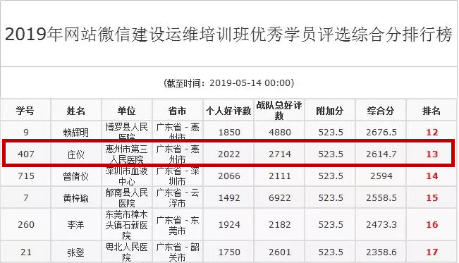這是一次活動體驗型培訓班,也是一個博弈共贏的傳播學習游戲。經(jīng)歷了秒殺報名的火爆,深夜課堂的堅持,組建戰(zhàn)隊參與營銷拉票的激烈角逐后,優(yōu)秀學員名單最終出爐。其中,惠州三院的2名成員榮獲“五十佳優(yōu)秀學員”稱號,其余6名也均順利挺進了“百佳”名單。