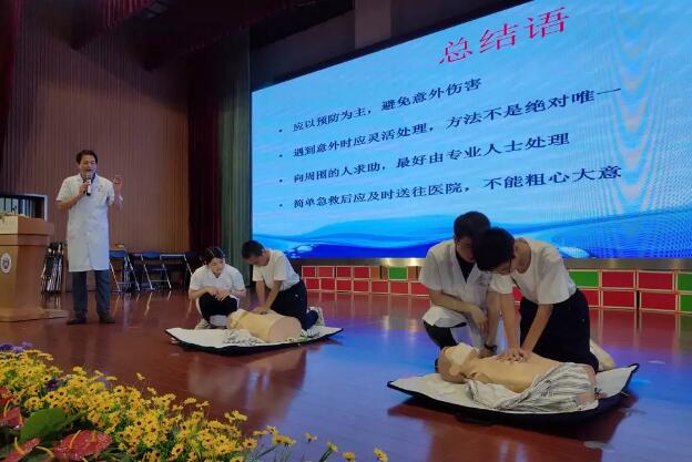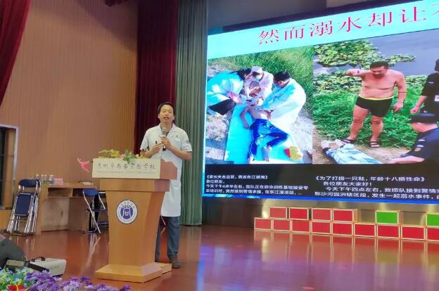 惠州三院急診科林月雄主治醫(yī)師則結合日常工作經驗、夏季高發(fā)青少年意外等為老師和同學們詳細講授溺水后的自救互救知識,以及心肺復蘇的操作規(guī)范與注意事項等,旨在提高師生們的基本應急救護能力。