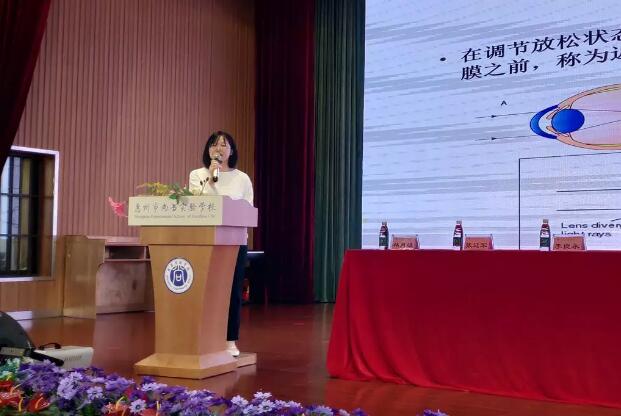 活動現場,惠州三院眼科李文濤博士用通俗易懂的方式為同學們講授了近視眼形成的原因以及如何預防近視眼等知識。