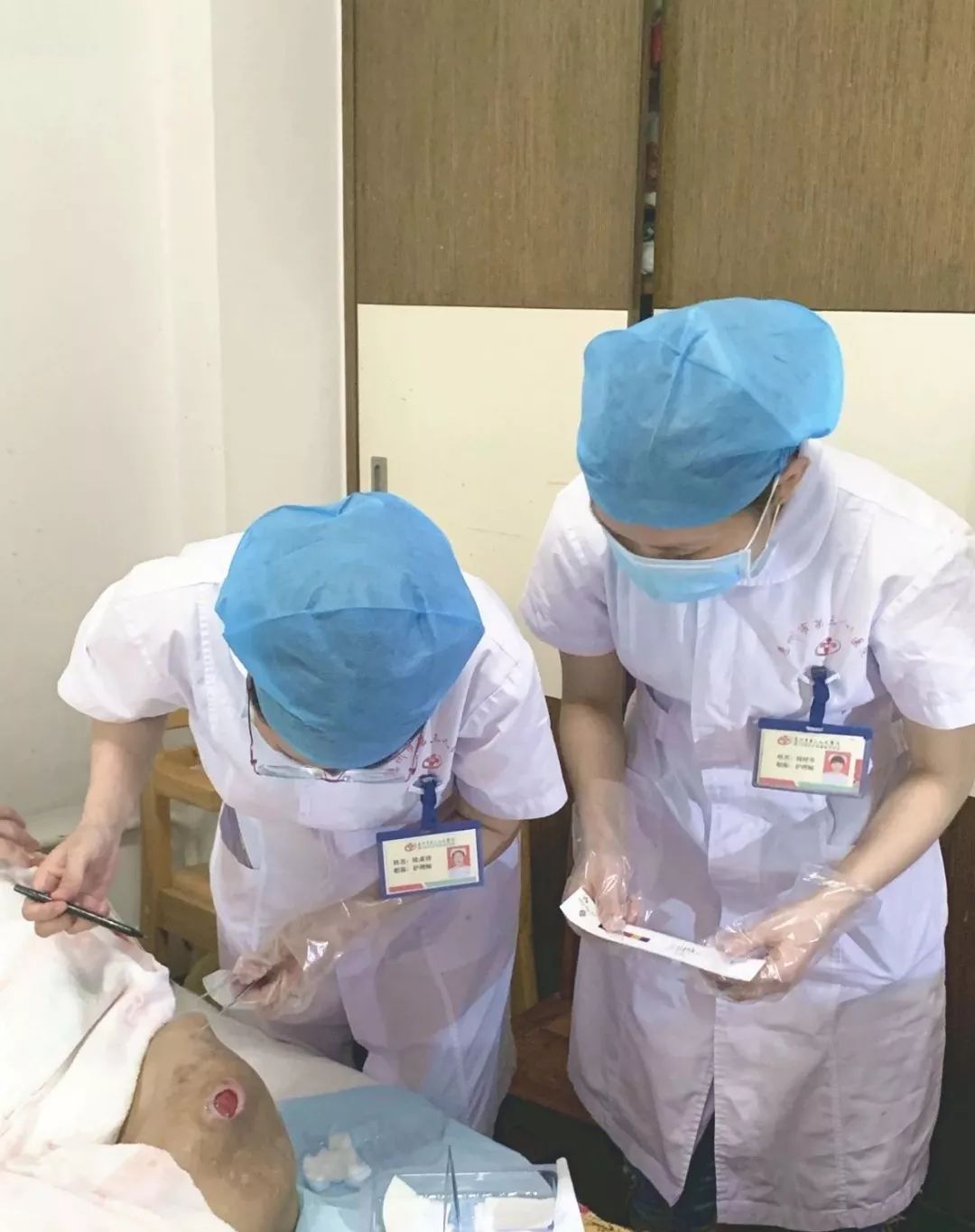 國(guó)際傷口造口師歐肅珍向家屬講解患者壓瘡情況
