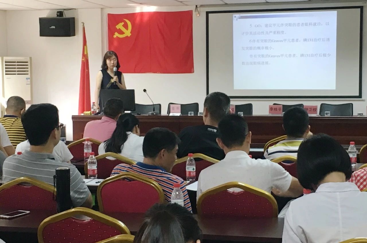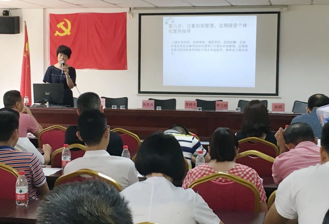 孫玥主任分享了“飲食習(xí)慣與糖尿病控制”,強(qiáng)調(diào)要注重自我管理,定期接受個體化營養(yǎng)指導(dǎo);蒿自睿副主任醫(yī)師分享了“甲亢病人I131治療”,詳細(xì)講解相關(guān)適應(yīng)癥及最新治療進(jìn)展;崔麗娟副主任醫(yī)師分享了“2018 國家社區(qū)糖尿病分級診療指南解讀”,強(qiáng)調(diào)血糖不達(dá)標(biāo)要分級管理。