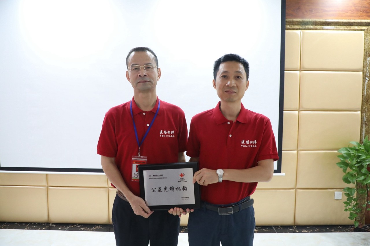 惠城區(qū)衛(wèi)健局副局長(zhǎng)詹阮代表中國(guó)紅十字基金會(huì)向惠州三院授予“公益先鋒機(jī)構(gòu)”榮譽(yù)牌匾