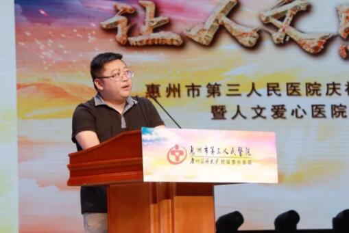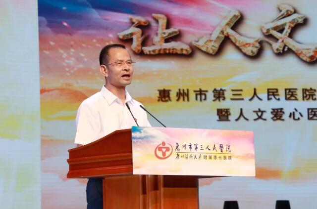 馬顯力院長在致辭中熱情洋溢地說到,今年是新中國成立70周年,也是惠州三院建院92周年,在第二屆中國醫(yī)師節(jié)到來之際,我們隆重舉行慶祝2019年醫(yī)師節(jié)暨人文愛心醫(yī)院成果展示活動,旨在用惠州三院人的方式向祖國母親獻禮、向無私奉獻的白衣戰(zhàn)士們致敬!他鼓舞三院人要在各級黨委政府和衛(wèi)生主管部門的堅強領導下,緊緊圍繞建設“一流醫(yī)院”的發(fā)展思路,全面踐行“惠心仁術,濟民安康”的服務宗旨,積極進取、奮發(fā)作為,以永不懈怠的精神狀態(tài)、舍我其誰的昂揚斗志,為惠州衛(wèi)生健康事業(yè)躍上新臺階而努力奮斗!