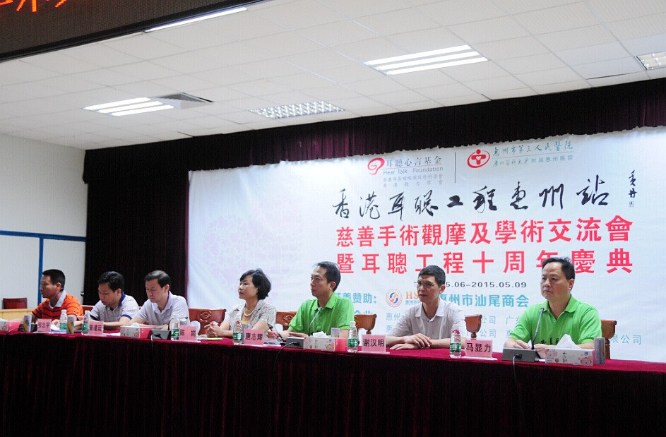 2015年5月8日,香港“耳聰工程”十周年慶典活動暨惠州市第一屆“耳聰工程”大型公益慈善活動在惠州市第三人民醫(yī)院隆重舉行,同時,“耳聰工程惠州站”也宣告成立,設(shè)在惠州市第三人民醫(yī)院!