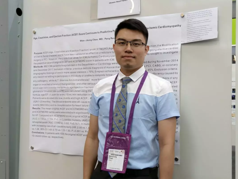 陳文中醫(yī)生在廣東省人民醫(yī)院學(xué)習(xí)期間,曾跟隨黎勵(lì)文教授、蔡安平博士所做的關(guān)于缺血性心肌病患者的前瞻性研究,并與冉鵬博士一同撰寫文章,經(jīng)ESC審稿后被評(píng)為壁報(bào)展示。