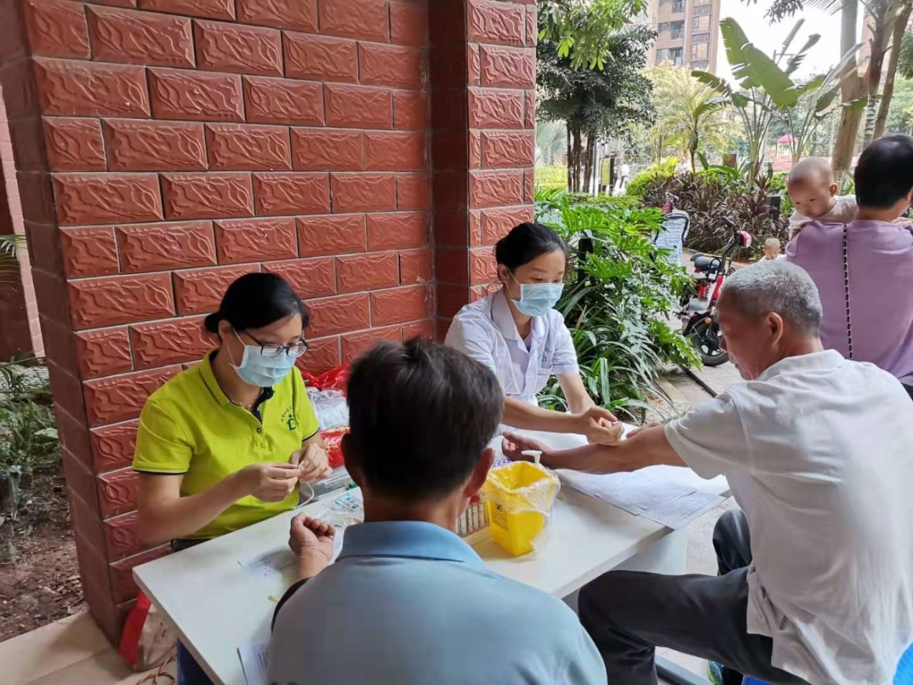 橋東衛(wèi)生服務(wù)中心醫(yī)護團隊正在為居民抽血