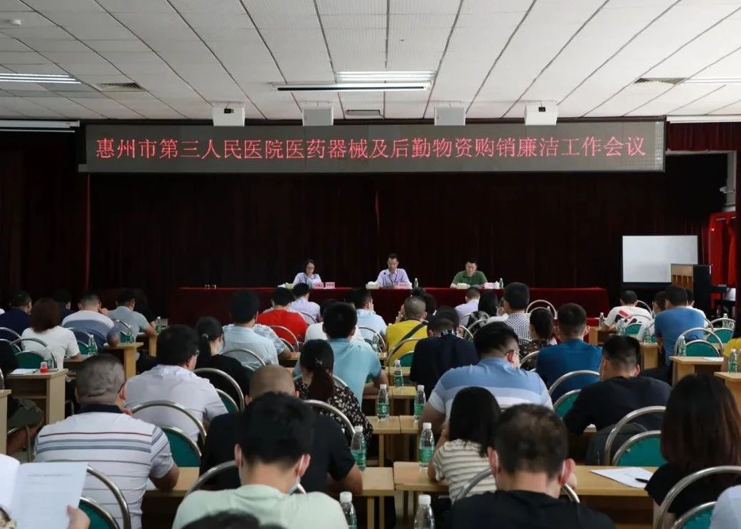 為認(rèn)真貫徹落實十九屆中央紀(jì)委三次會議精神,根據(jù)國家《2019年糾正醫(yī)藥購銷領(lǐng)域和醫(yī)療服務(wù)中不正之風(fēng)工作要點》要求,嚴(yán)格執(zhí)行《加強醫(yī)療衛(wèi)生行風(fēng)建設(shè)“九不準(zhǔn)”》,規(guī)范醫(yī)藥器械及后勤物資購銷行為,2020年5月26日下午,惠州市第三人民醫(yī)院隆重召開2020年醫(yī)藥器械及后勤物資購銷廉潔工作會議。