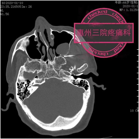 在CT引導(dǎo)下,經(jīng)顳側(cè)顴弓下穿刺進(jìn)入翼腭窩(即蝶腭神經(jīng)節(jié)的“家”),將射頻電極送至蝶腭神經(jīng)節(jié),開(kāi)啟脈沖射頻模式,調(diào)整合適參數(shù),對(duì)蝶腭神經(jīng)節(jié)調(diào)整,達(dá)到治療目的。