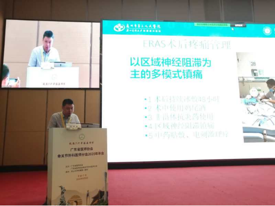 惠州三院武明鑫教授作為骨關(guān)節(jié)分會(huì)副主任委員在廣州主會(huì)場(chǎng)以“基層三甲醫(yī)院骨科創(chuàng)新模式下開(kāi)展 ERAS 工作的經(jīng)驗(yàn)”為題目進(jìn)行授課,分享惠州三院骨科醫(yī)學(xué)中心ERAS病房的工作開(kāi)展經(jīng)驗(yàn),從ERAS病房的定義、臨床意義及術(shù)前、術(shù)中、術(shù)后的診療過(guò)程等方面闡述了ERAS病房管理理念,詮釋了ERAS病房管理模式是已證實(shí)能有效減少手術(shù)及其他治療處理措施所引起的應(yīng)激反應(yīng)及并發(fā)癥的方法,對(duì)于加速患者術(shù)后康復(fù)、加快病房周轉(zhuǎn)率、減輕患者及家屬經(jīng)濟(jì)負(fù)擔(dān)起到了很大的作用。