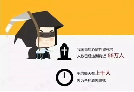 WHO對(duì)猝死的定義,即平素身體健康或貌似健康的患者,在出乎意料的短時(shí)間(6小時(shí))內(nèi),因自然疾病而突然死亡的情況。全球每年約300萬人發(fā)生猝死,大約75%為心源性猝死,它的發(fā)生僅在短短1小時(shí)內(nèi)。