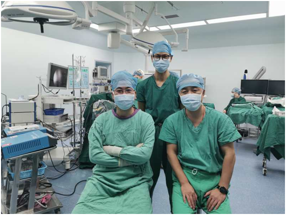 洪濤教授(左一)李雪松副院長(右一)文世宏主任(中間)
