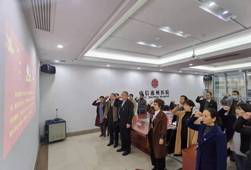 隨后,雙方黨委書記領(lǐng)誓,與會黨員干部面向黨旗,重溫入黨誓詞。
