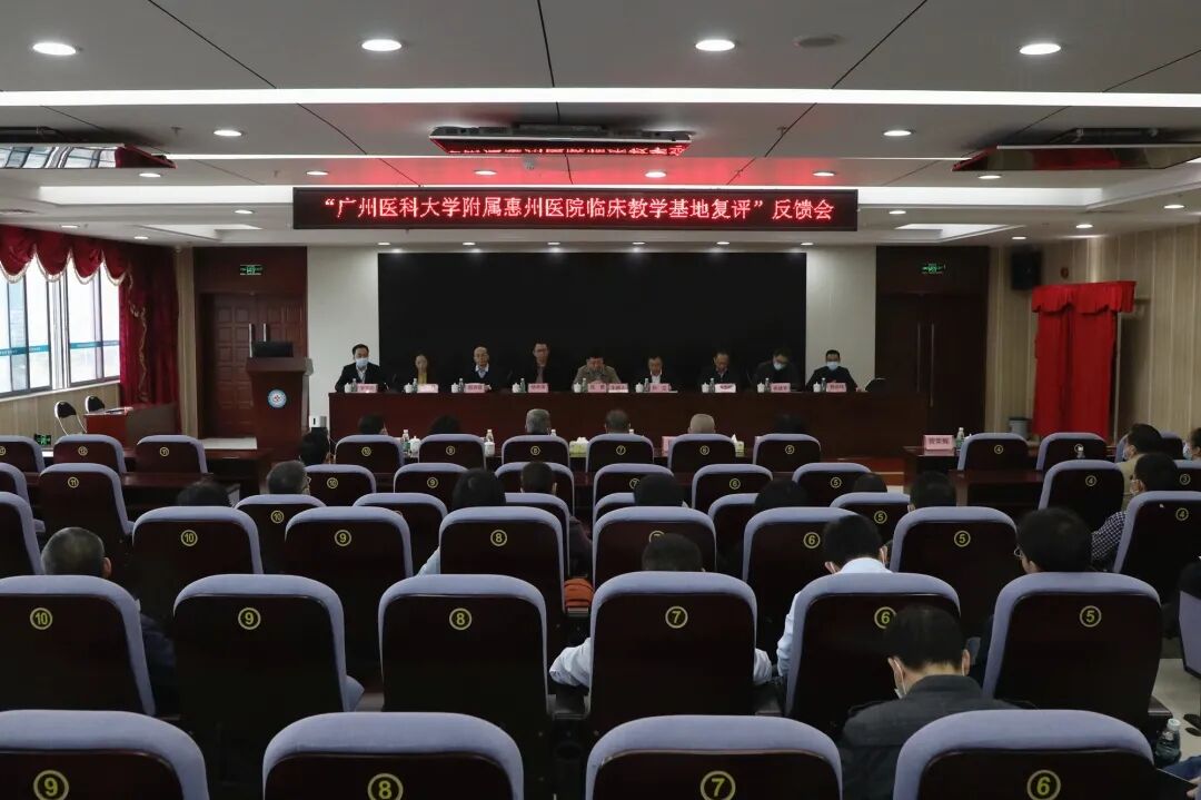 當天下午,“廣州醫(yī)科大學附屬惠州醫(yī)院臨床教學基地復評”反饋會在惠州三院東院區(qū)學術報告廳舉行。