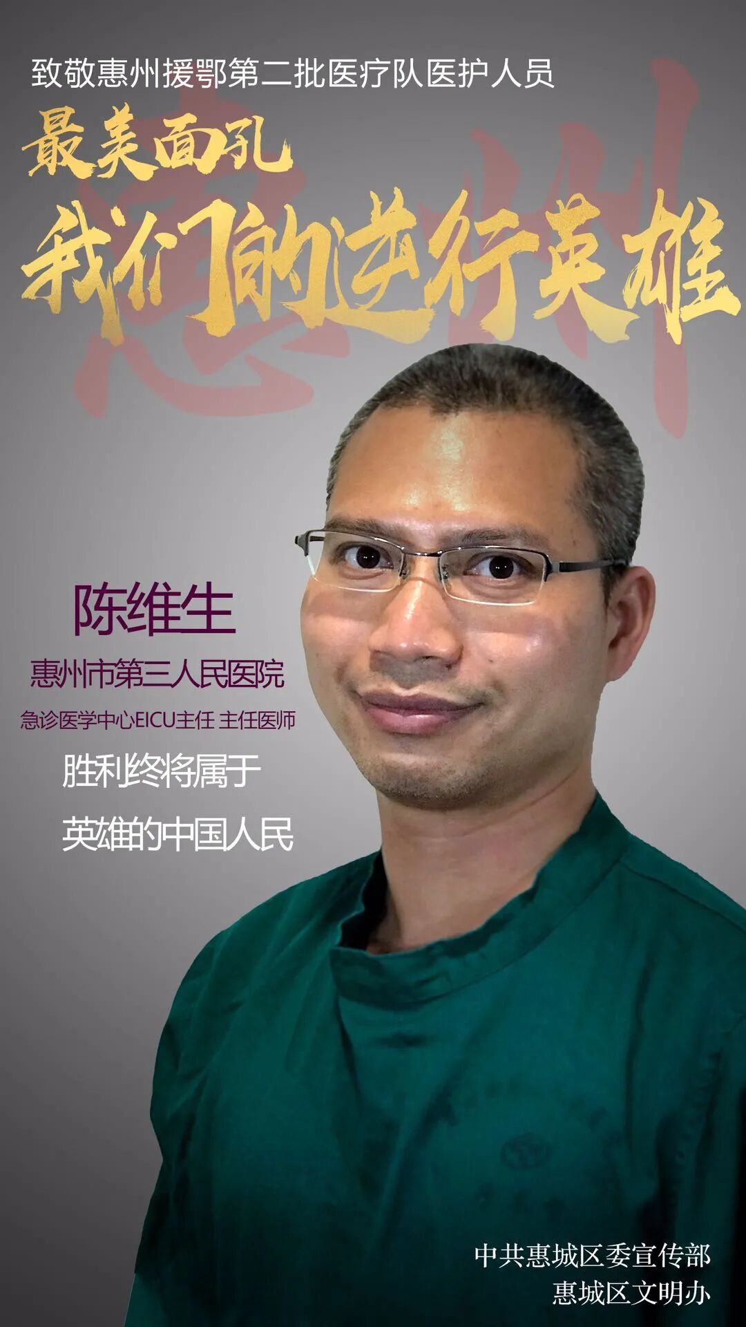 2020年8月,惠州市第三人民醫(yī)院援鄂醫(yī)療隊(duì)隊(duì)員徐永輝、陳維生、王科3人榮獲2020年第二季度“惠州好人”稱號(hào)(敬業(yè)奉獻(xiàn)類)。