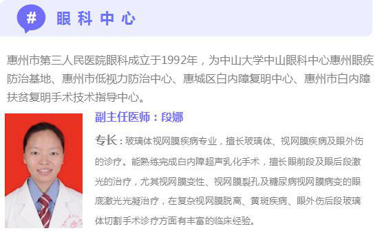 目前激光及手術(shù)設(shè)備的不斷改進(jìn)和完善,通過(guò)激光治療或玻璃體切割手術(shù),晚期“糖網(wǎng)”患者仍可恢復(fù)一定視力?!疤蔷W(wǎng)”患者一定要定期到眼科醫(yī)院檢查眼底。相信醫(yī)生、堅(jiān)持治療,按照診療和復(fù)診情況制定個(gè)性化治療方案。在這里,小編還是要提醒各位“糖友”,千萬(wàn)要選擇專業(yè)的眼科機(jī)構(gòu)去檢查和手術(shù),惠州市第三人民醫(yī)院眼科已成立29年,擁有專業(yè)的醫(yī)療團(tuán)隊(duì),配備玻璃體切割機(jī)等專業(yè)的手術(shù)設(shè)備,臨床經(jīng)驗(yàn)豐富,已幫助上萬(wàn)人恢復(fù)高晰視力,相信這是個(gè)不錯(cuò)的選擇。