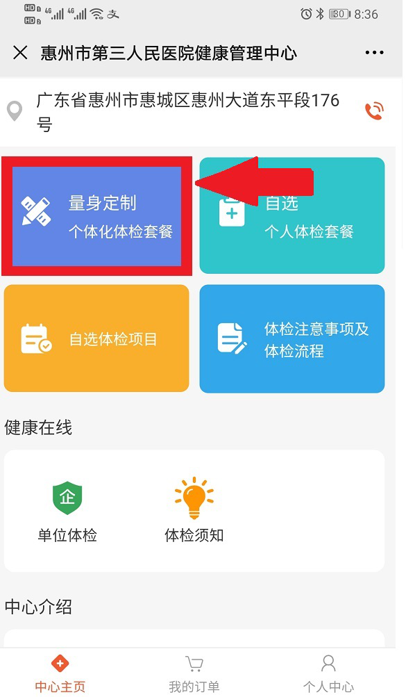 選擇菜單欄點(diǎn)擊“我要體檢→定制套餐”