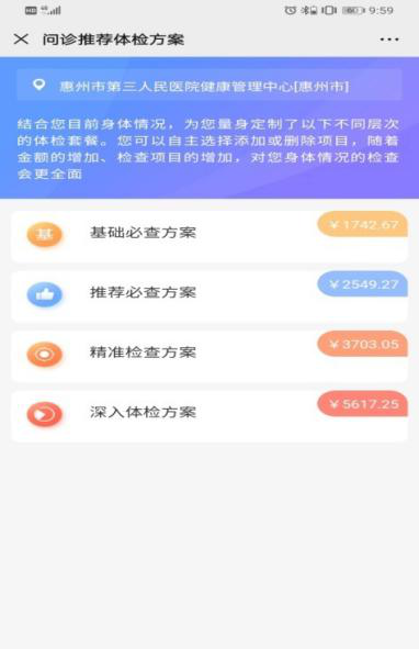 推薦體檢方案:專家為您定制四個檔次的體檢方案,請自選一個合適的方案。