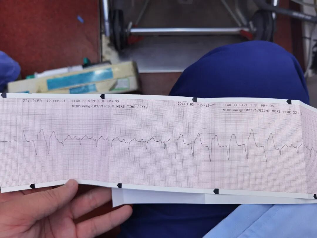 19:57,正當(dāng)救護(hù)車要進(jìn)入龍門縣城時,龍門縣人民醫(yī)院心內(nèi)科再次發(fā)來信息:“剛才搶救過,室速室顫發(fā)作,心跳驟停兩次,都搶救中過來了!現(xiàn)在人神志清醒的,一般情況還行,心電圖評估應(yīng)該通了?!?/span>