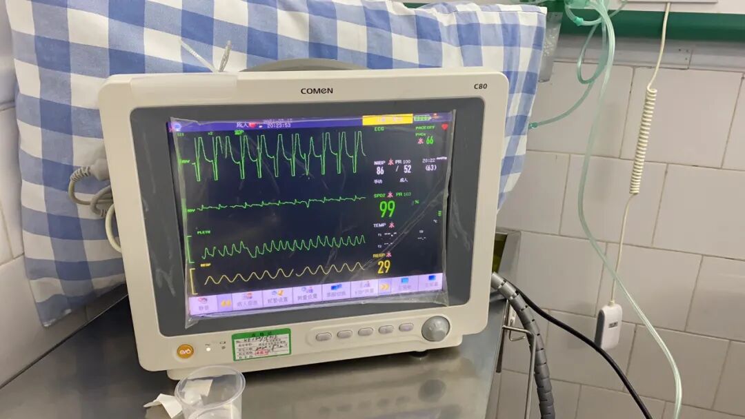 盡管已經(jīng)溶栓治療,患者室顫,心律嚴(yán)重失常,血管可能再通,也可能還有更嚴(yán)重冠脈堵塞,盡早送冠脈造影,進(jìn)一步診療是重要的生命保證。路途中監(jiān)護(hù)反復(fù)顯示短陣室速,醫(yī)護(hù)人員和家屬的心懸了一路。