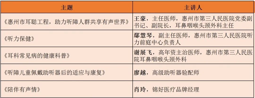 為提高人民群眾的愛耳、護耳意識,促進聽力殘疾預防與康復工作,切實幫助聽障人士回歸有聲世界,惠州市第三人民醫(yī)院將于2021年3月3日第22次愛耳日前后舉行愛耳周系列公益活動。