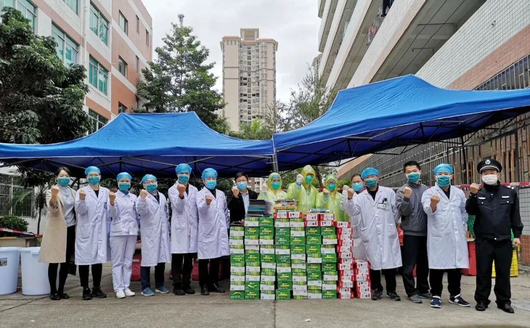 惠州三院負責人李雪松(左六)帶隊慰問隔離區(qū)患者