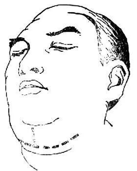 腐敗壞死性感染的患者,全身中毒嚴(yán)重,體溫不一定高,患者神志淡漠,脈搏快弱,呼吸急促,血液下降,呈中毒性休克狀態(tài)。局部廣泛腫脹,皮膚充血發(fā)紅不明顯,但緊張發(fā)亮,捫之堅(jiān)硬如木板,觸之有捻發(fā)感,口底抬高,呈半開(kāi)口狀,累及舌根壓迫會(huì)厭部,或頸部壓迫氣管可致窒息。