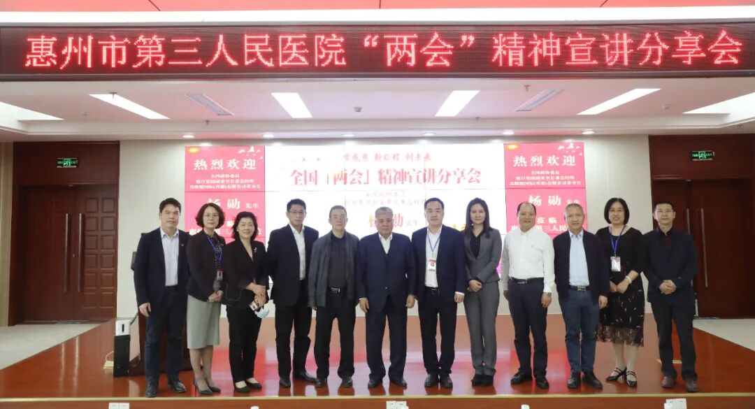 2021年3月26日下午,以“常感恩 新征程 創(chuàng)未來”為主題的全國兩會精神宣講分享會在惠州市第三人民醫(yī)院東院區(qū)學(xué)術(shù)報告廳舉行。