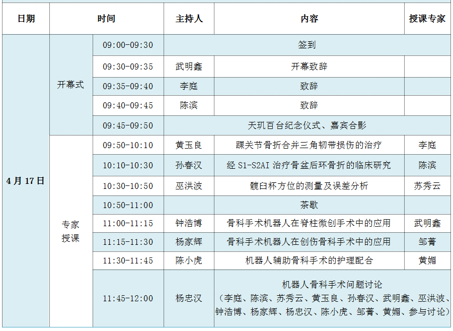 《耕耘今天,收獲明天——骨科學(xué)術(shù)交流會(huì)暨機(jī)器人百臺(tái)手術(shù)經(jīng)驗(yàn)分享會(huì)》會(huì)議議程