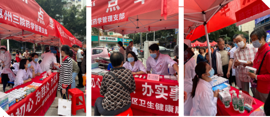 此次活動由藥學(xué)管理支部書記葉立新帶隊,五名黨員藥師參加,為現(xiàn)場群眾提供咨詢服務(wù),解答用藥疑問,科普用藥知識。