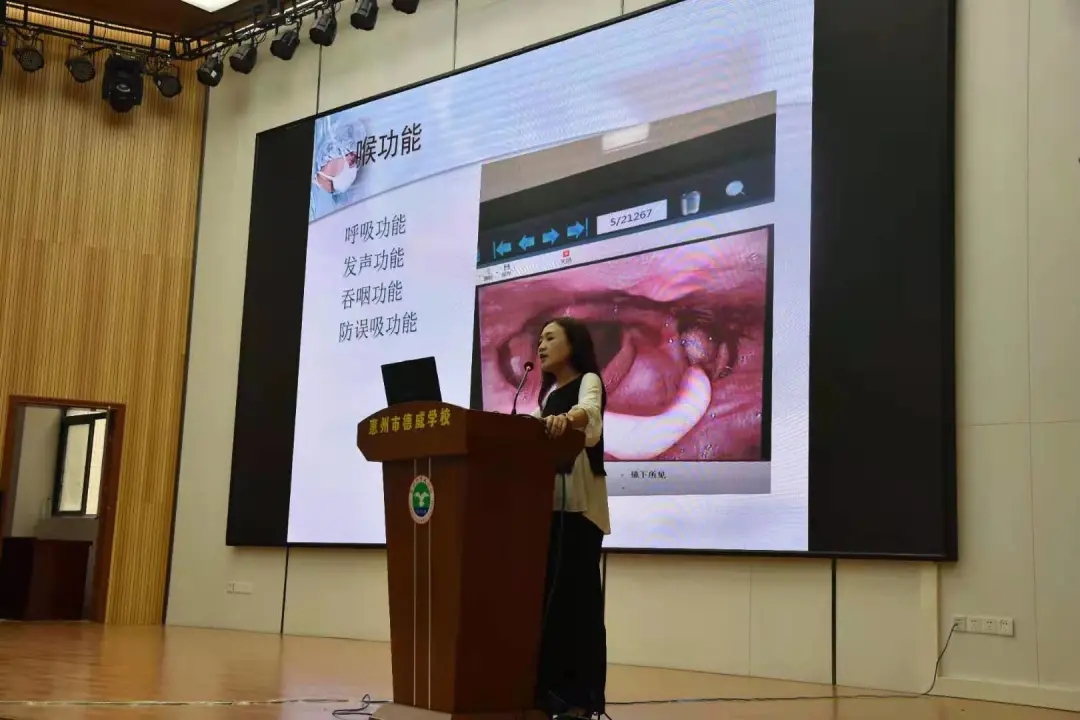 為了讓更多人重視嗓音健康,耳鼻咽喉頭頸外科醫(yī)護團隊走進惠州市德威學校,為嗓音疾病高發(fā)職業(yè)的人群—老師,進行了一次“科學用嗓,美麗嗓音”的公益講座,提高大家對嗓音健康的認知。該校教師共210人,學生約3600余人,史冬梅副主任醫(yī)師聲情并茂的授課,受到師生們的熱烈歡迎。