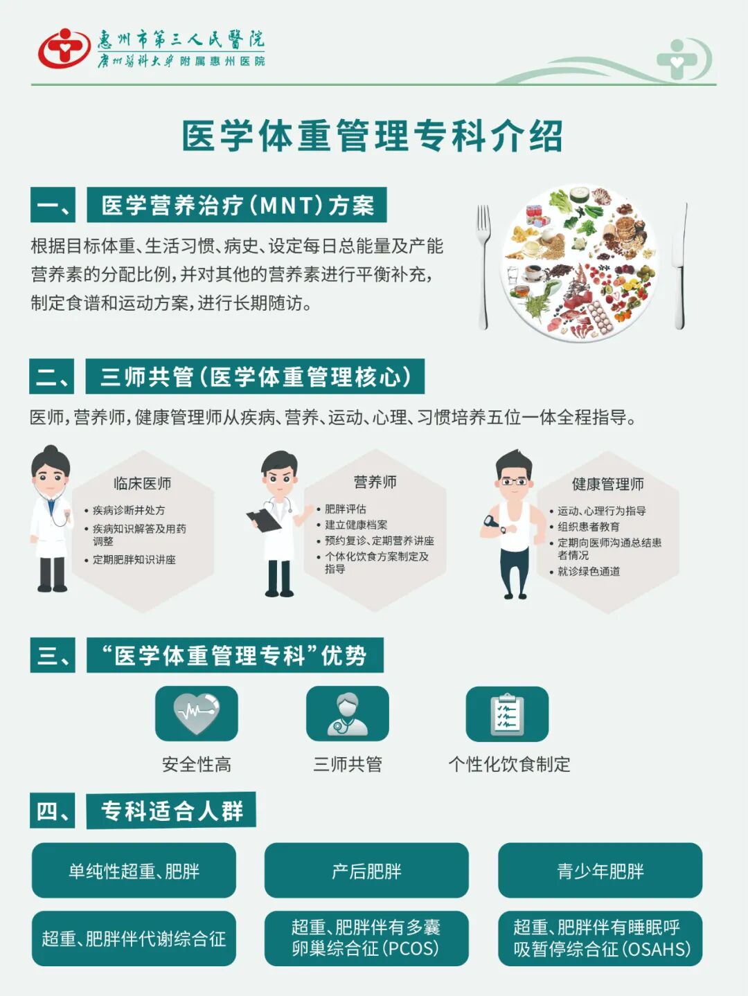 如果你家里有小胖墩需要減重,可以來惠州市第三人民醫(yī)院門診3樓內(nèi)分泌科肥胖門診咨詢就診。我們不僅有專業(yè)的臨床醫(yī)師坐診,還有營養(yǎng)師、運(yùn)動(dòng)管理師共同指導(dǎo),為你個(gè)性化制定飲食方案,幫助你進(jìn)行醫(yī)學(xué)體重管理。