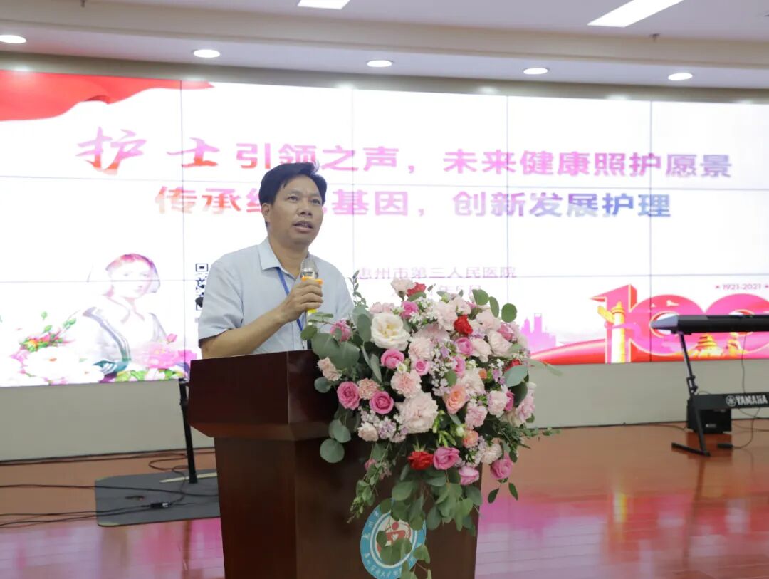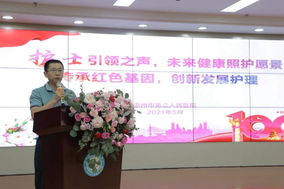 惠州三院負(fù)責(zé)人李雪松通過視頻向全體護(hù)理人員致以節(jié)日問候和誠摯祝福。