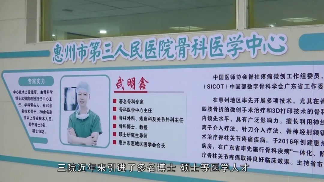 他是惠州市第一位骨科博士,多項手術(shù)填補了惠州的空白,開創(chuàng)了惠州微創(chuàng)骨科發(fā)展的新領(lǐng)域,牽頭引進了骨科手術(shù)機器人,讓醫(yī)院邁入智能化、精準(zhǔn)化、微創(chuàng)化的機器人手術(shù)新時代……他就是惠州市第三人民醫(yī)院骨科醫(yī)學(xué)中心主任武明鑫博士。敬請收看本期《惠城故事》之 ——《傳醫(yī)學(xué)之道 育骨科棟梁 引高精技術(shù)》