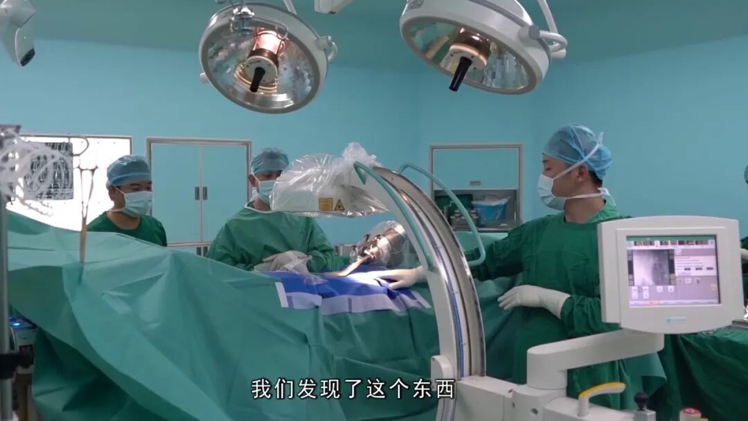 我們手術(shù)當(dāng)中就看這片,我就打了幾枚螺釘就行了,這么做的好處是什么?剛才我們看那個病人一看他手術(shù)就幾個小切口,就是手術(shù)通道的切口都一個厘米長左右,三個切口,一個是中細(xì)的切口,用四個小切口。完成這個手術(shù),而且手術(shù)時間很短,經(jīng)過一次三維掃描之后,用它進行精準(zhǔn)定位,它手術(shù)創(chuàng)傷非常少,失血量幾十毫升,如果是按照常規(guī)傳統(tǒng)的手術(shù),那你沒有這個東西只能常規(guī)做,我們切很長的口要放鋼板,放鋼板的費用也上來很多,而且要輸血,輸血麻醉。這方面對醫(yī)生來說呢,我們縮短了手術(shù)時間,我們進行了一個最小量的植入物,完成了一個非常大的手術(shù),達(dá)到了這個效果,而且我們醫(yī)生也減少了手術(shù)透視的一個反復(fù)曝光的一個次數(shù),對我們這個醫(yī)生的健康也是有好處的。單論這種手術(shù)來說呢,他的康復(fù)周期會短很多一個是我們手術(shù)切口小。就說失血少,這對他來講呢,就是說鎖其實就是一個微創(chuàng)手術(shù),那么對她的身體的影響,脹氣的變化影響,都是非常小的。
