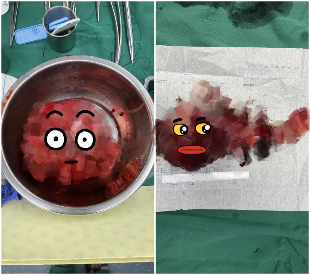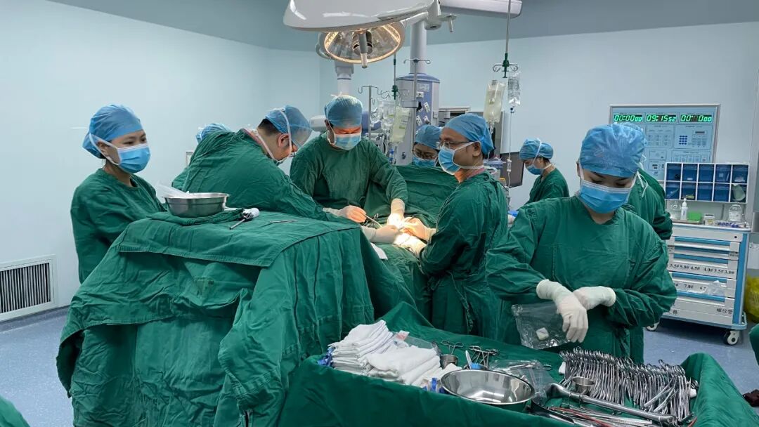 手術(shù)于3月24日上午進行,由中山大學附屬腫瘤醫(yī)院泌尿腫瘤科董培教授作主要技術(shù)指導,惠州三院泌尿外科科主任楊偉忠主任醫(yī)師、麻醉科科主任龍宏杰主任醫(yī)師、手術(shù)室護士長梁雪景副主任護師親自坐鎮(zhèn),為患者在手術(shù)過程中的心率、血壓等重要生命體征保駕護航。開刀后,患者張叔的巨大嗜鉻細胞瘤及周邊豐富、粗大的營養(yǎng)血管暴露在大家眼前,損傷后極易出血,必須逐一結(jié)扎后才能推進腫瘤切除。然而,由于腫瘤實在太大了,嚴重遮擋視野,出血難以避免,止血十分困難,長時間壓迫止血還會導致血壓受刺激升高,情況危急!教授眼疾手快,果斷先壓迫止血,在血壓升高前爭分奪秒切除腫瘤,以最快速度結(jié)束戰(zhàn)斗!