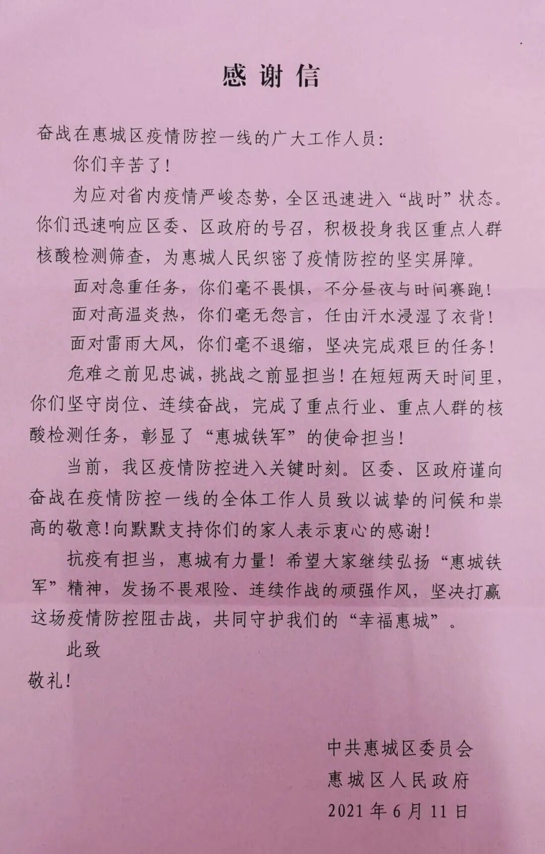 惠城區(qū)委、區(qū)政府向疫情防控一線工作人員表示誠摯問候