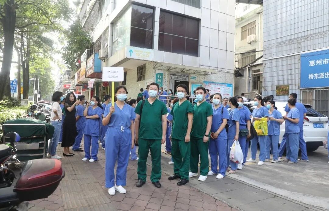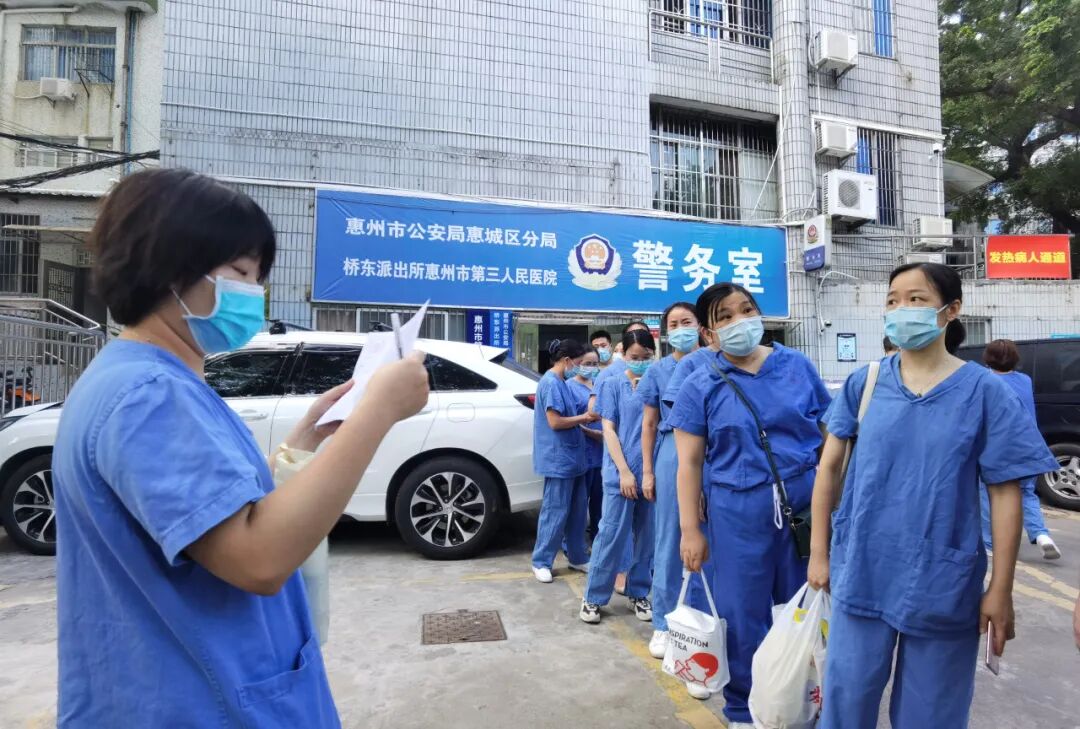 6月9日和10日一大早,惠州市第三人民醫(yī)院行政樓前,一群身穿藍色和綠色手術(shù)衣的醫(yī)護人員火速集結(jié),整裝待發(fā),準備奔赴一個個沒有硝煙的“戰(zhàn)場”——核酸采樣點。