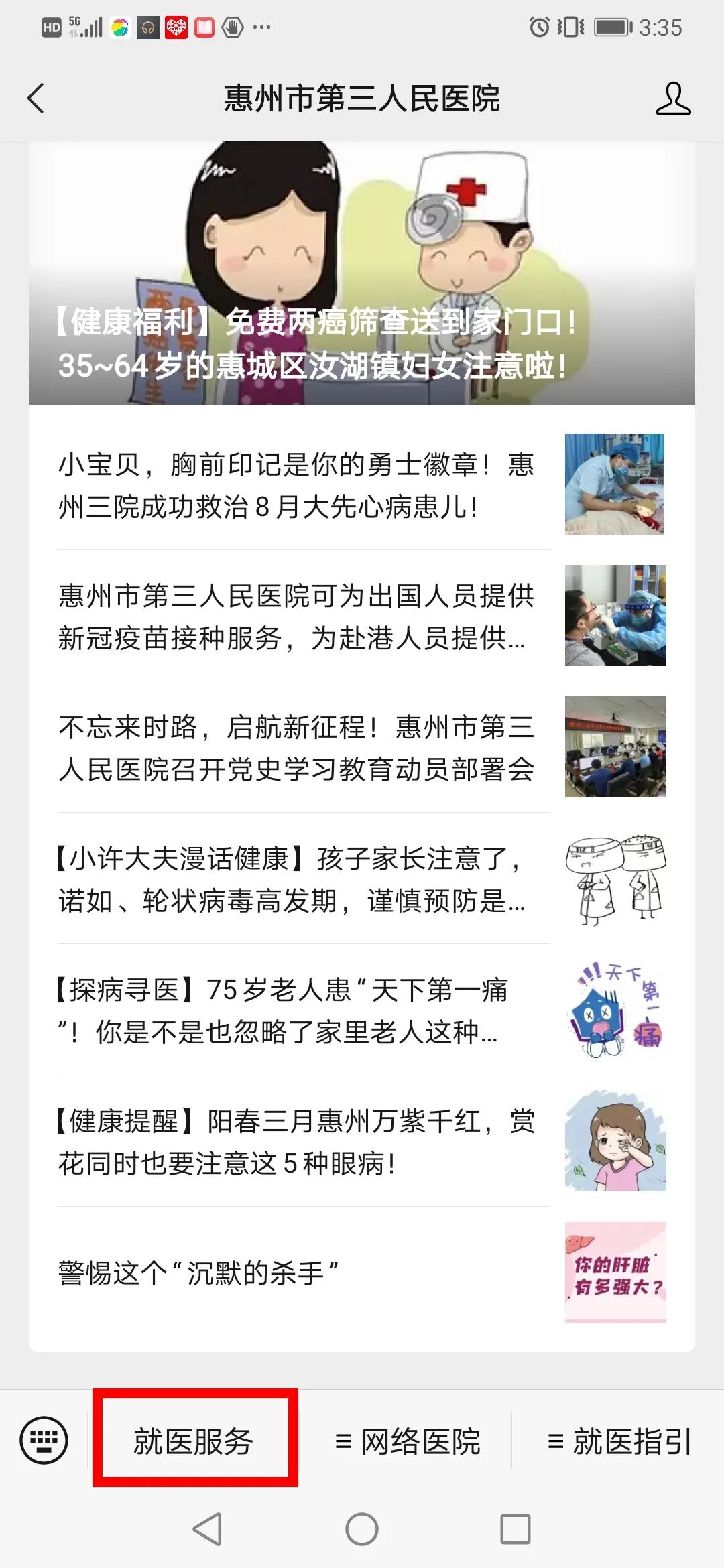 1. 關(guān)注惠州市第三人民醫(yī)院公眾號