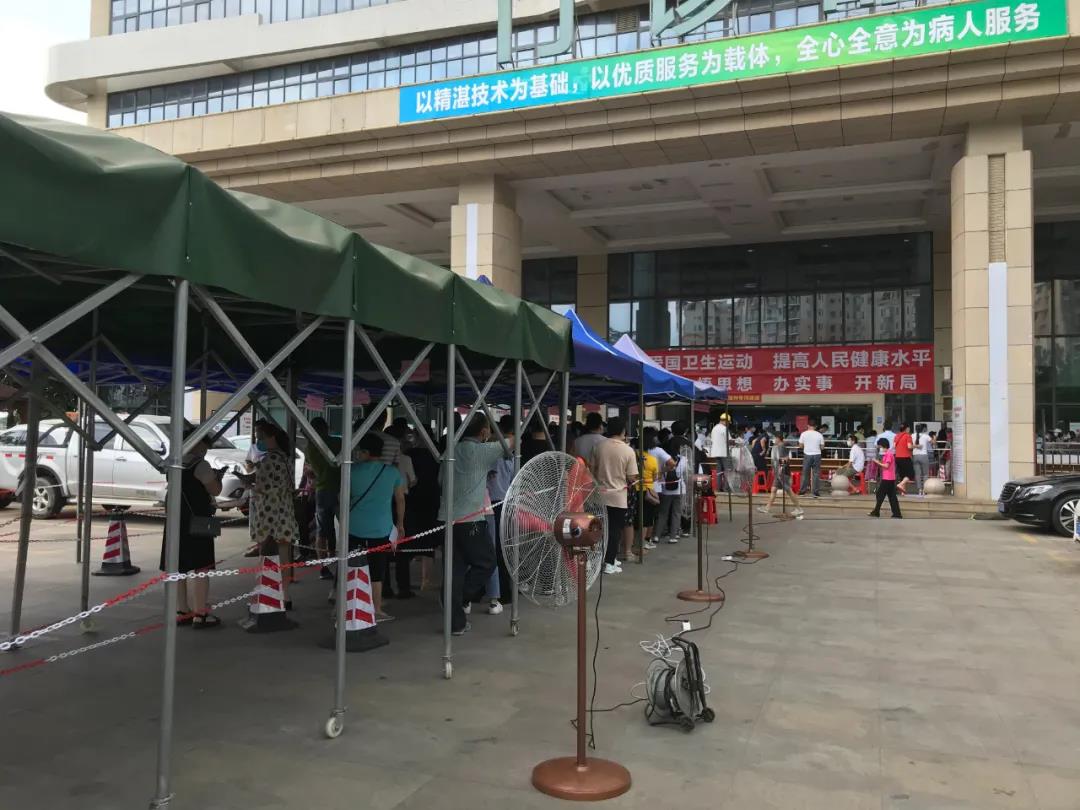 天氣炎熱,醫(yī)院為前來(lái)接種疫苗的市民提供遮陽(yáng)棚和風(fēng)扇降溫