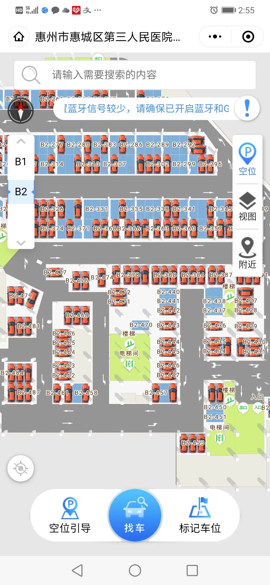惠州三院本部地下停車場由地下兩層組成,不熟悉醫(yī)院環(huán)境的患者容易診后找車難,現(xiàn)在只需要通過一樓電梯口及負(fù)一樓電梯口的反向查車機(jī)或手機(jī)掃碼即可快速動(dòng)態(tài)導(dǎo)航尋車。