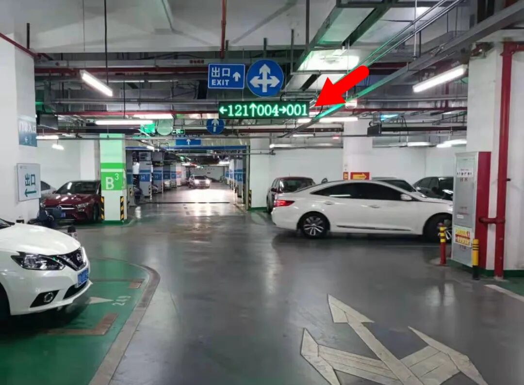 指示箭頭方向的剩余車位一目了然(該指示牌代表左側(cè)方向剩余車位121個(gè),前方剩余車位4個(gè),右側(cè)方向剩余車位1個(gè))