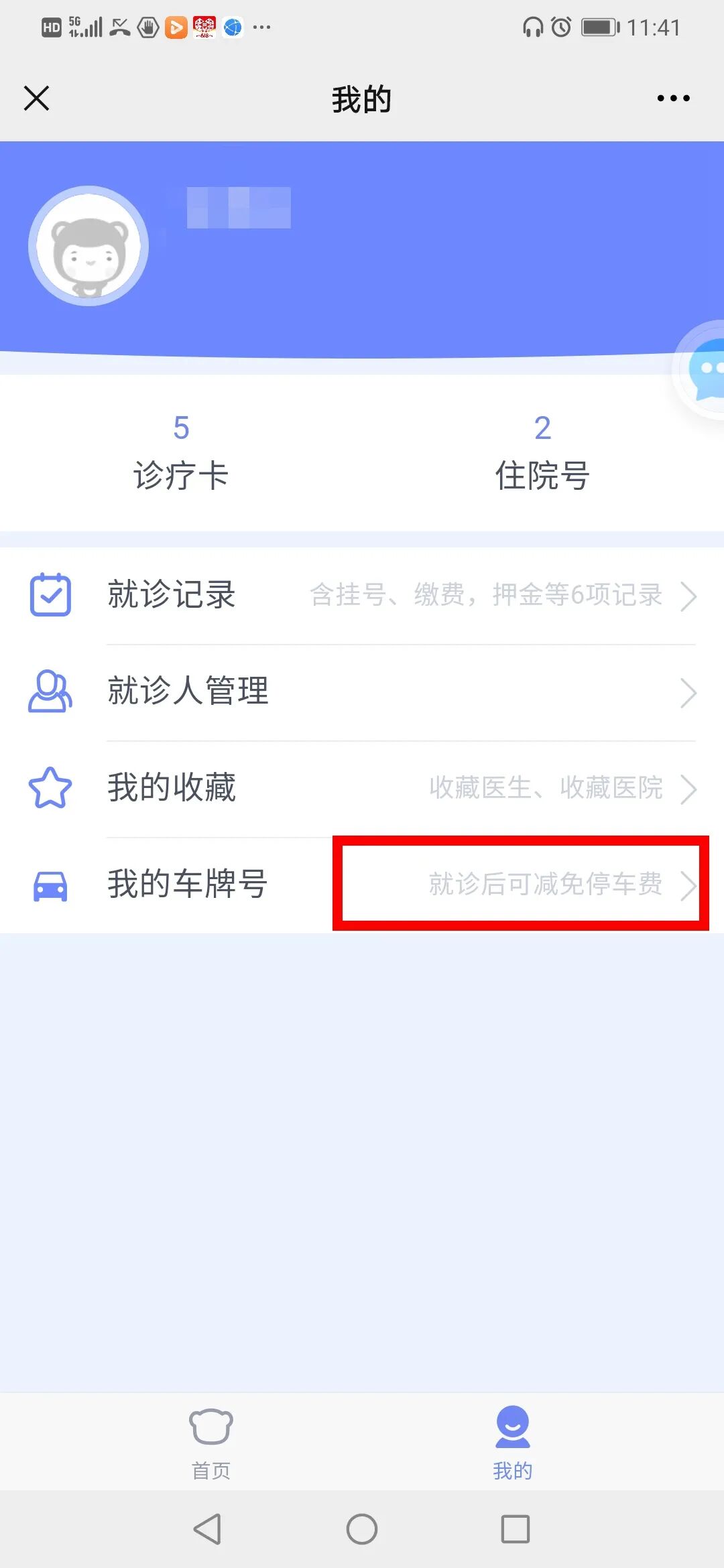 點(diǎn)擊“就醫(yī)服務(wù)”→右下角“我的”→“我的車牌號(hào)” →選擇需要與車牌關(guān)聯(lián)的就診人→輸入車牌號(hào)→點(diǎn)擊確定,保存即可。