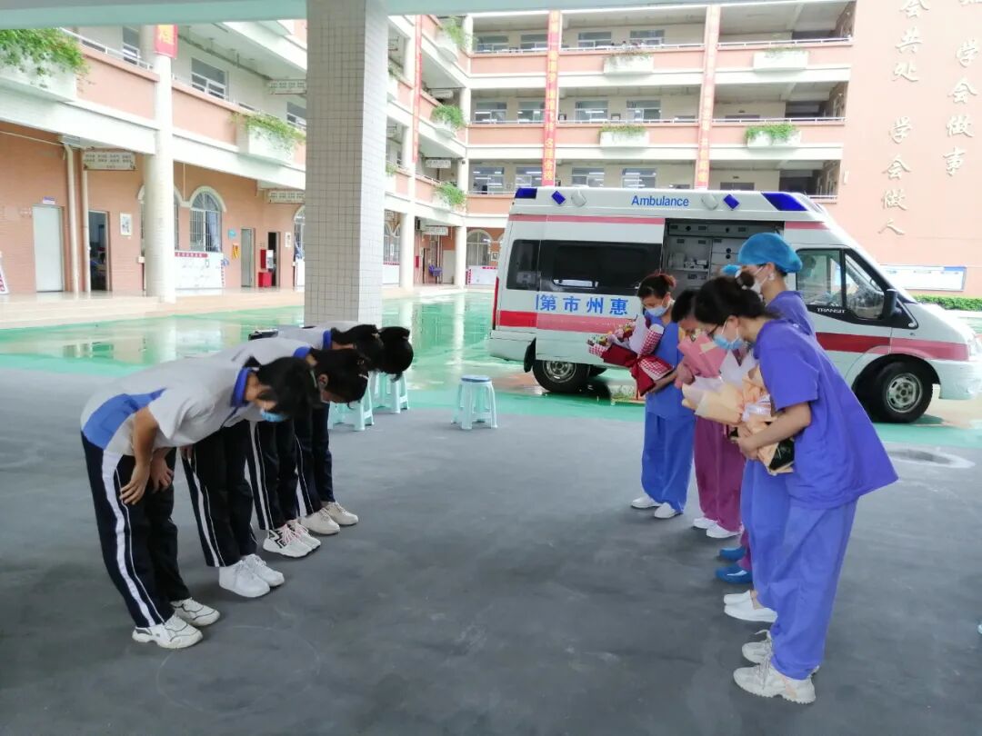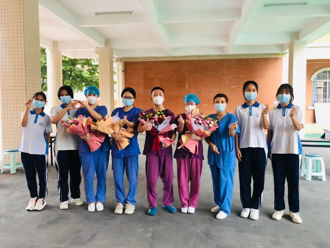 2021年6月24日,細(xì)雨綿綿,在惠州市第五中學(xué)廣場上,上演了暖心一幕。核酸采集工作結(jié)束后,學(xué)校的同學(xué)們整齊地排成幾列,用手勢舞《聽我說謝謝你》表達(dá)謝意,向核酸采集醫(yī)護(hù)人員致敬!