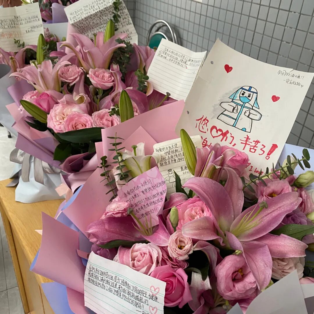 “親愛的白衣天使們,你們辛苦了!感謝你們?yōu)槲覀冏龊怂釞z,你們也要保護(hù)好自己的身體?!?/span>
