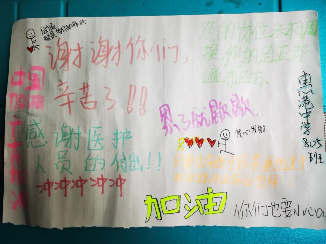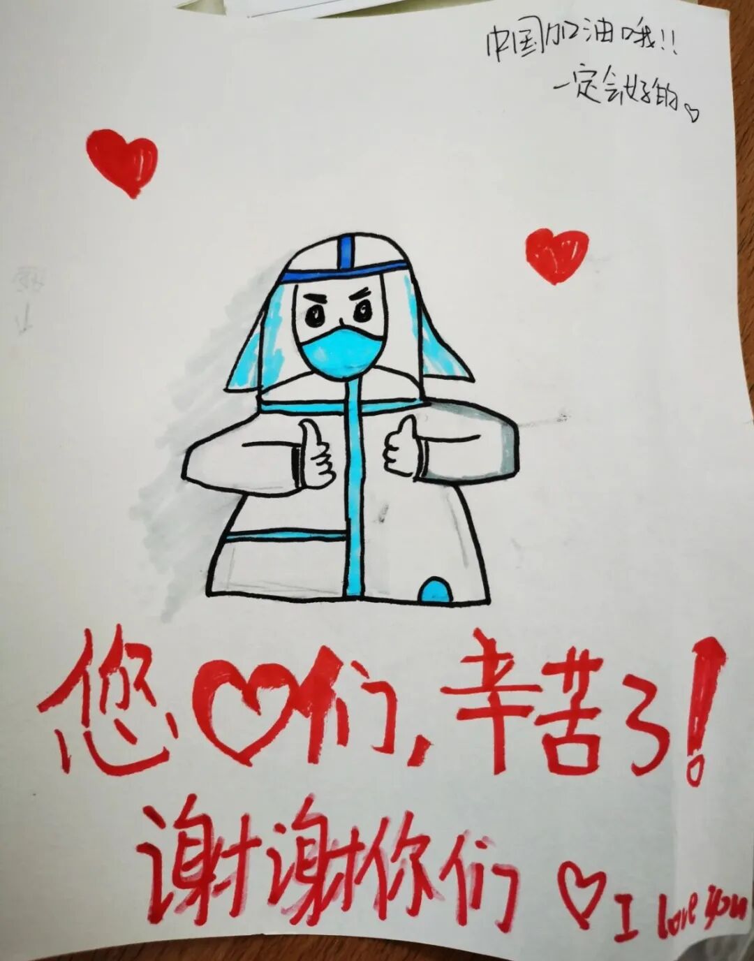 對于醫(yī)護(hù)人員來說,核酸采集只是本職工作,但是學(xué)生們暖心感人的表達(dá)都是大家沒想到的。一幅幅可愛靈動的畫作,一封封樸實真摯的感謝信,如同春風(fēng)拂面,讓醫(yī)護(hù)人員感到溫暖、喜悅和鼓舞。