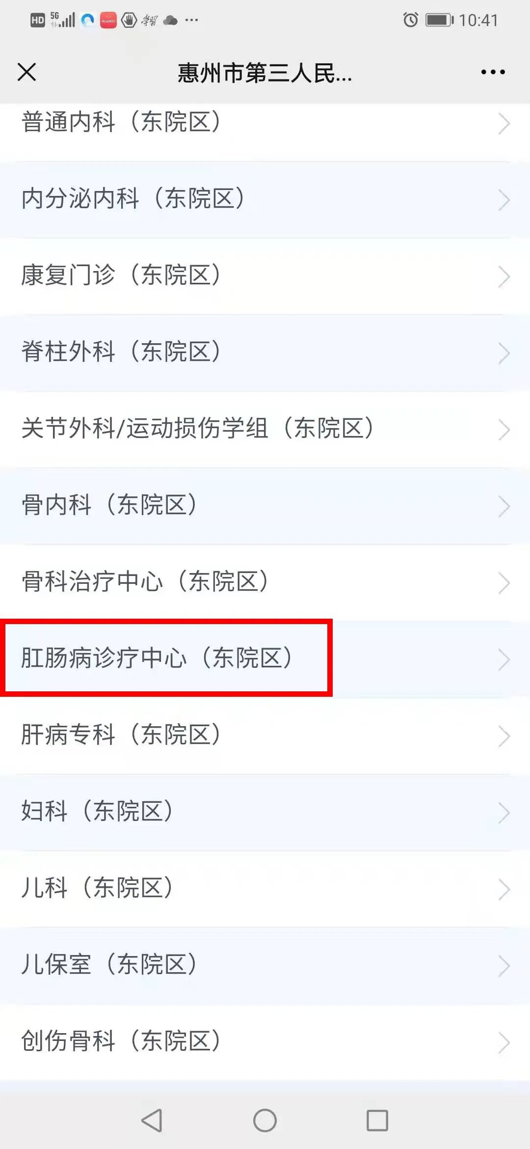 微信預(yù)約:關(guān)注“惠州市第三人民醫(yī)院”公眾號(hào)進(jìn)行微信預(yù)約(點(diǎn)擊菜單欄:就醫(yī)服務(wù)→在線掛號(hào)→東院區(qū)→預(yù)約掛號(hào)→肛腸病診療中心→選擇6月30日→選擇醫(yī)生)