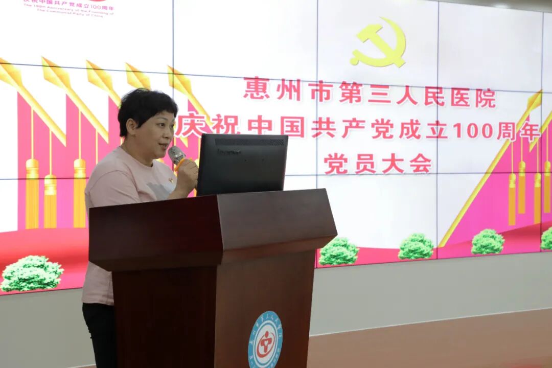 會(huì)上,惠州三院黨委委員李瑞林通報(bào)了醫(yī)院2021年新發(fā)展黨員及轉(zhuǎn)正黨員情況。