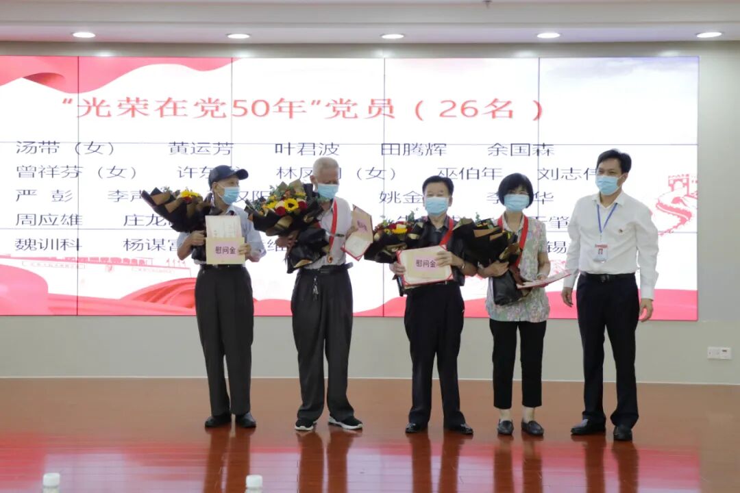 惠州三院黨委副書(shū)記王豪宣讀表彰決定。經(jīng)過(guò)層層推薦和評(píng)審,醫(yī)院10個(gè)先進(jìn)黨支部、10名優(yōu)秀黨務(wù)工作者、50名優(yōu)秀共產(chǎn)黨員、9名“健康幫扶黨員責(zé)任崗”崗位標(biāo)兵、10名“學(xué)習(xí)強(qiáng)國(guó)”學(xué)習(xí)標(biāo)兵,脫穎而出受到上級(jí)和醫(yī)院表彰。為隆重慶祝黨的百年華誕、深入開(kāi)展黨史學(xué)習(xí)教育,醫(yī)院黨委于近期舉辦了主題征文、知識(shí)競(jìng)賽、短視頻比賽,會(huì)上對(duì)獲獎(jiǎng)集體和個(gè)人進(jìn)行表彰。大會(huì)為“光榮在黨50年”老黨員代表頒發(fā)紀(jì)念勛章,還為“光榮在黨30年”在職黨員頒發(fā)紀(jì)念證書(shū)。