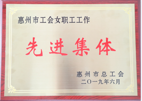 2019年獲評(píng)惠州市總工會(huì)授予“2014-2018年惠州市工會(huì)女職工工作先進(jìn)集體”稱號(hào)