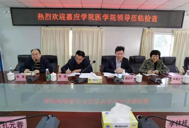 2021年12月3日上午,嘉應(yīng)學(xué)院醫(yī)學(xué)院教務(wù)科周銘科長、實(shí)習(xí)科龔幼平科長、醫(yī)學(xué)系鐘鋒主任、實(shí)習(xí)科林翠蘭副科長一行四人蒞臨我院,對我院涉及嘉應(yīng)學(xué)院醫(yī)學(xué)院臨床學(xué)院40人、畢業(yè)實(shí)習(xí)49人的臨床教學(xué)工作的開展情況進(jìn)行了檢查和指導(dǎo)。